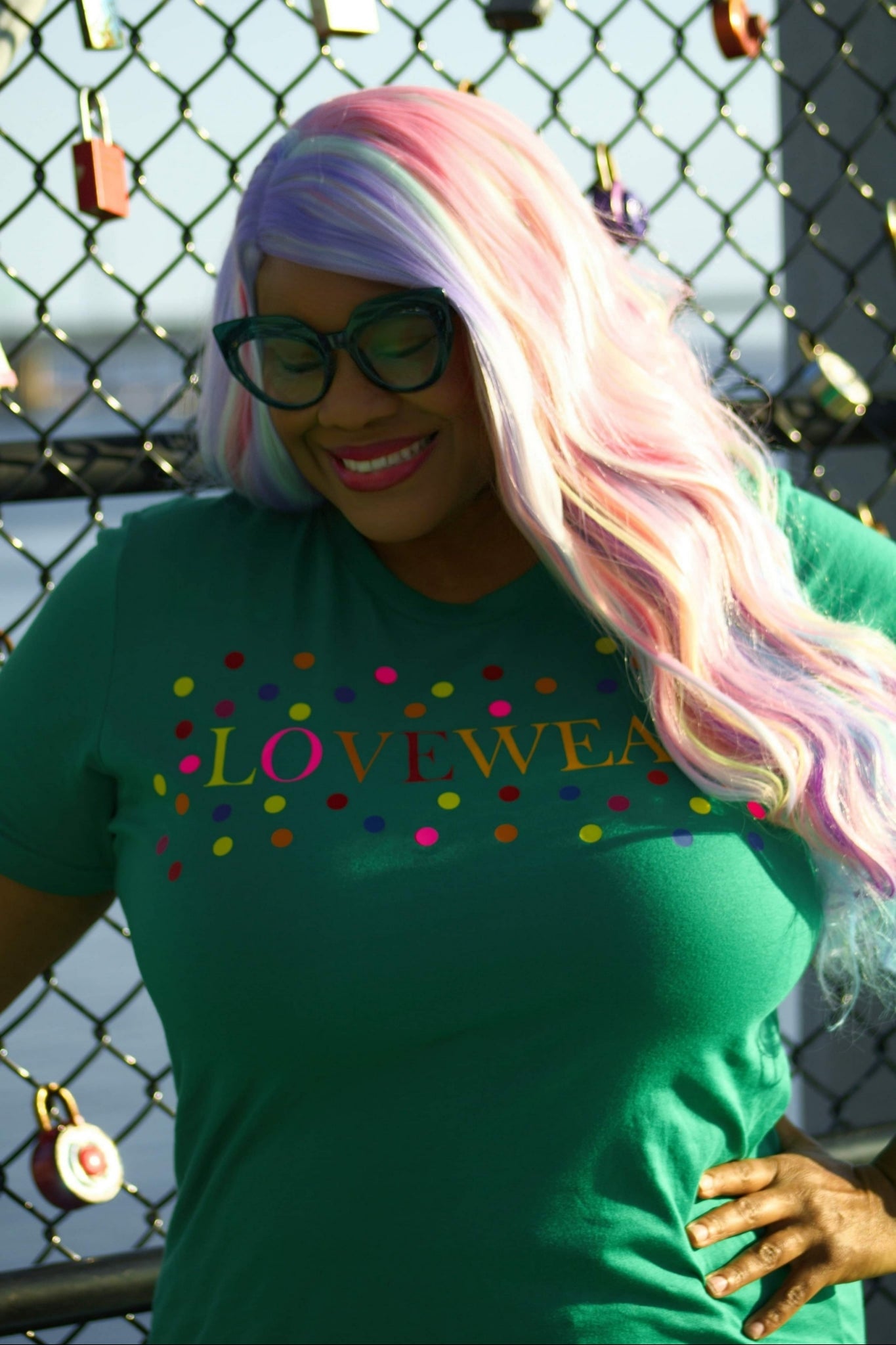Spring is a rainbow of Ləv! Our Hello Spring! shirts are a take on of our very popular Multicolor shirts; and we've kicked it up a notch by adding a burst of color, making these shirts even more versatile for your pairing options! The blended cotton continues to dominate in comfort and style and each shirt is sprinkled with a different set of colors! Ləv is found at the end of the Rainbow!