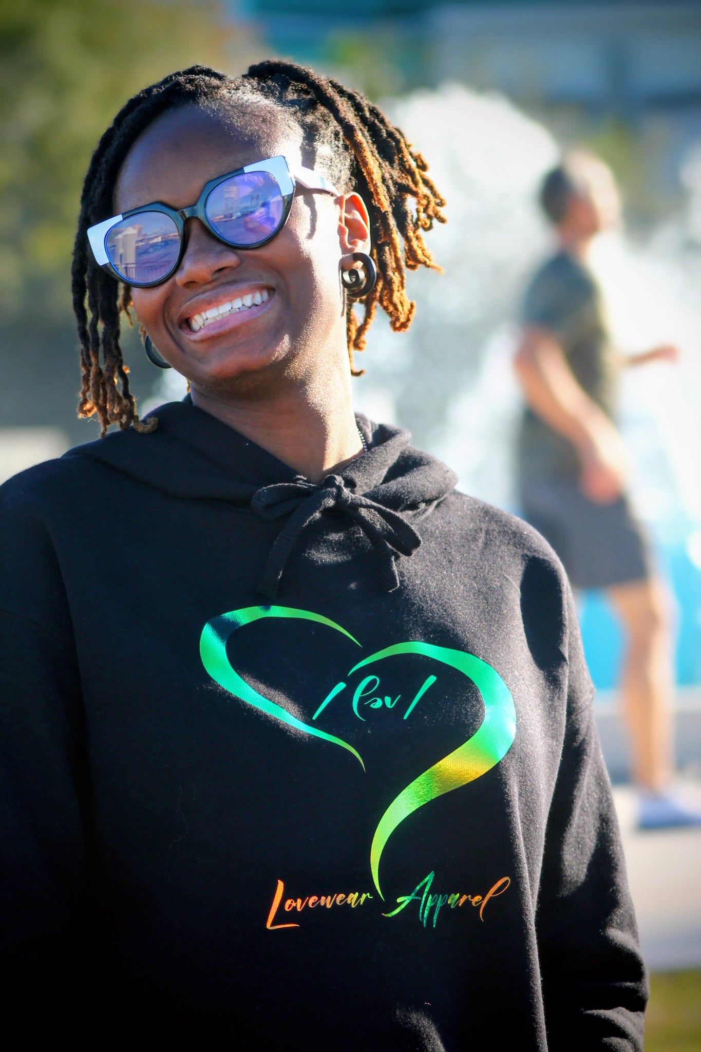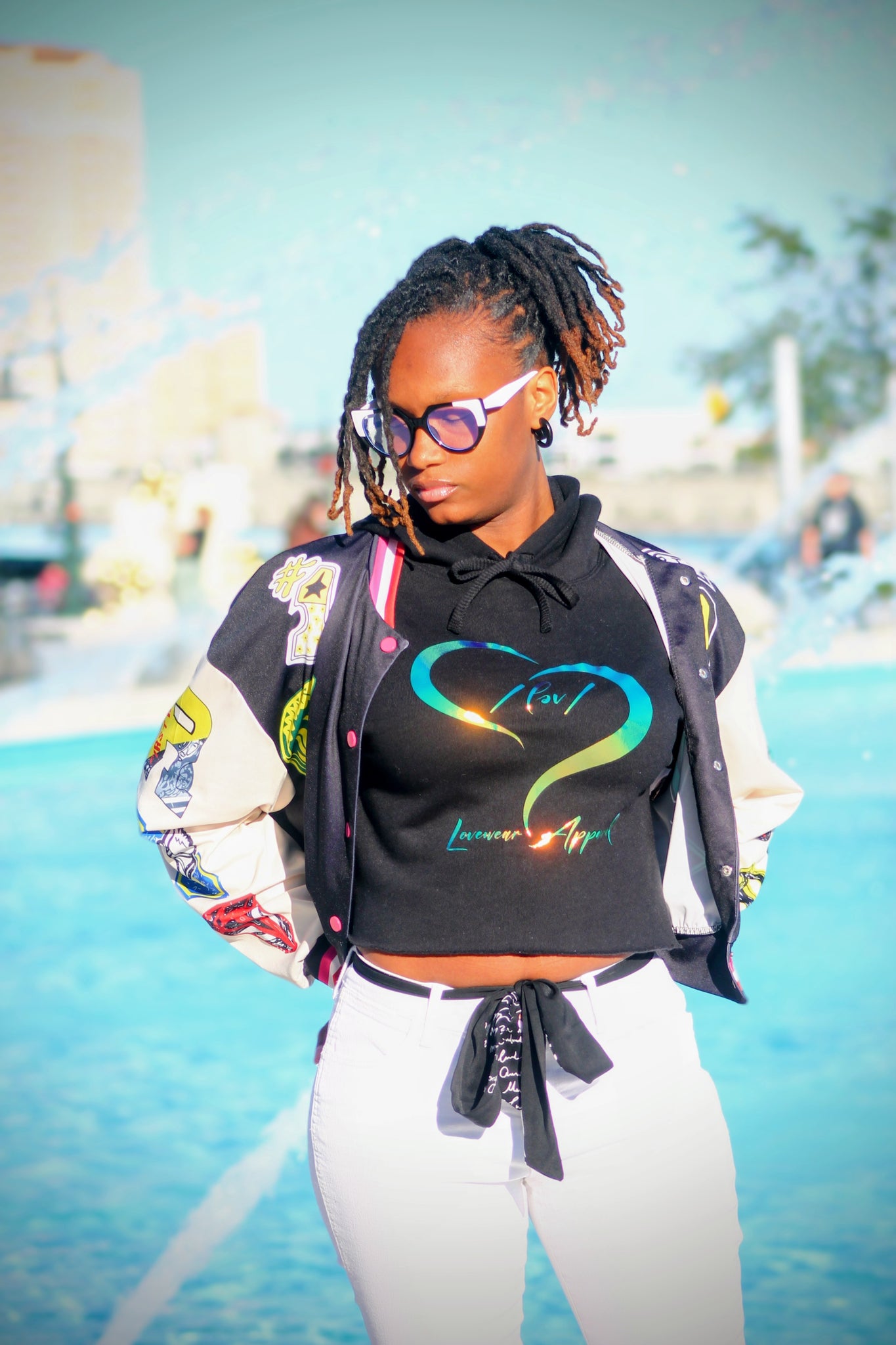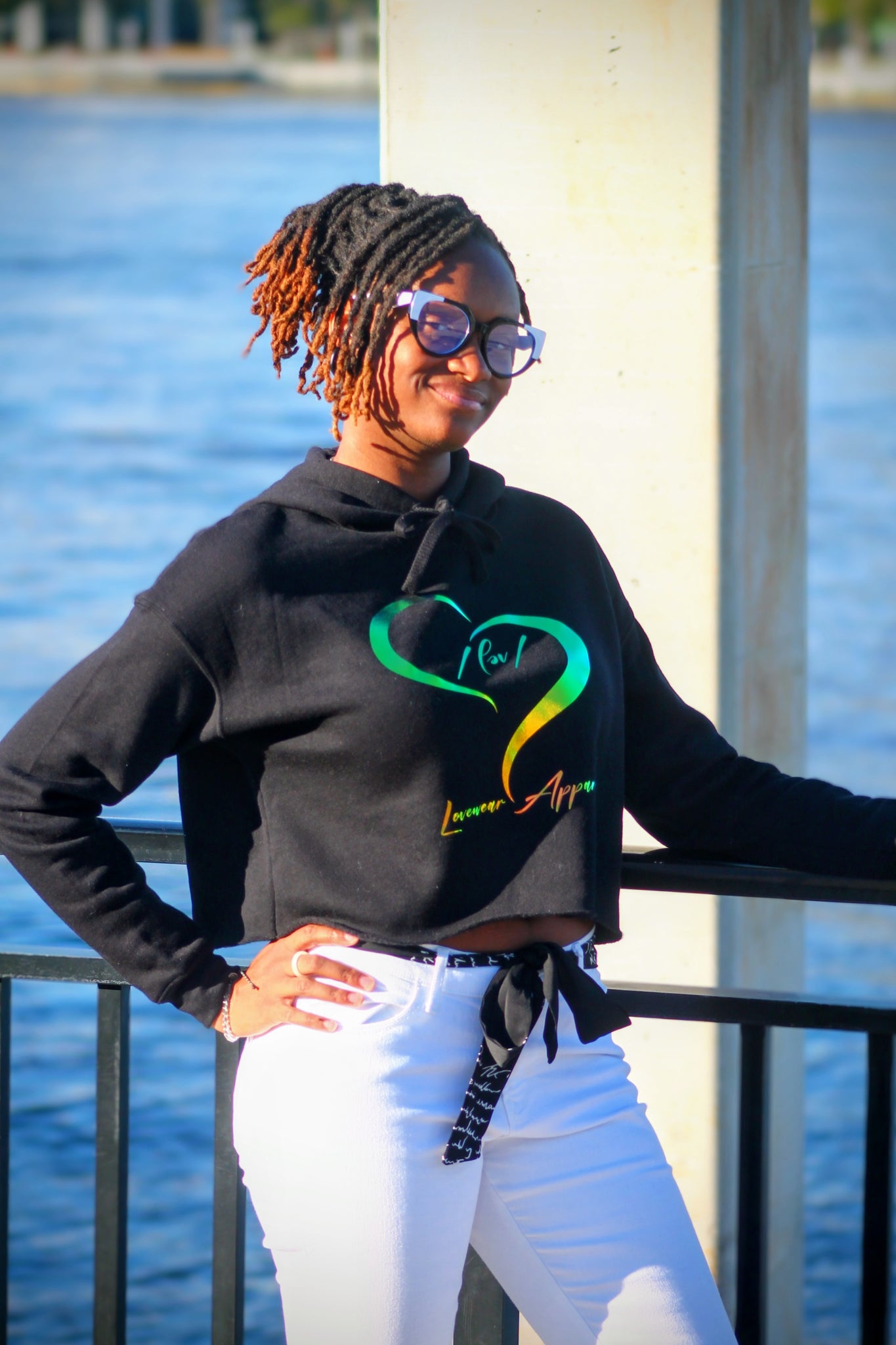 This cropped hoodie blends bold streetwear with feminine strength, offering a flattering fit that commands attention while staying effortlessly comfortable. Whether you’re calling the shots or simply showing up as your authentic self, this piece lets the world know: love rules the house—always.